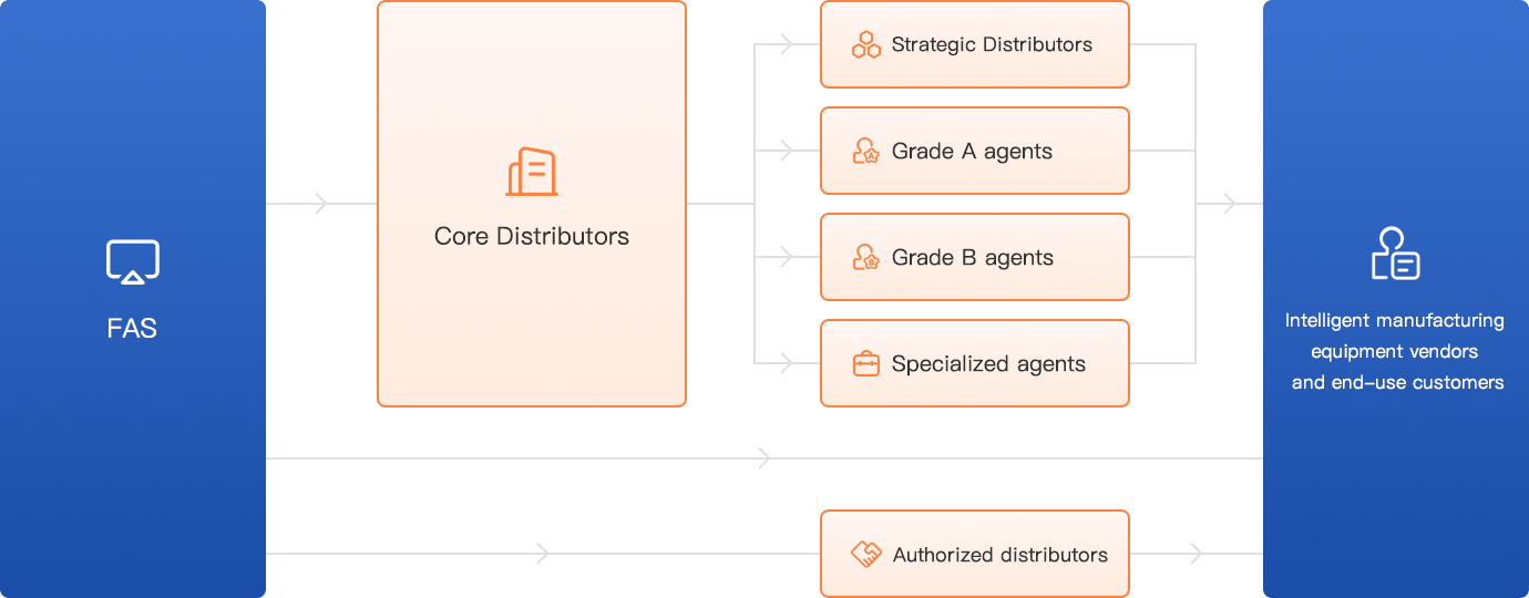 Distributors partners are important helpers of FAS in the industry or region, able to build a sales network covering the target users, or directly covering the target users, engaged in FAS hardware and software products and solutions sales, promotion work, for the whole process of operation, service support to provide strong product eco-partners force protection.